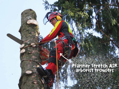 Stretch-AIR arborist chainsaw trousers by Pfanner have long been considered the best chainsaw protection garments on the market. The picture below is of a 3-year pair of Stretch-AIR arborist trousers worn almost everyday by Rossy Ross of Pro Climb.